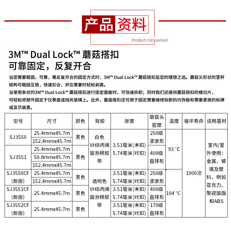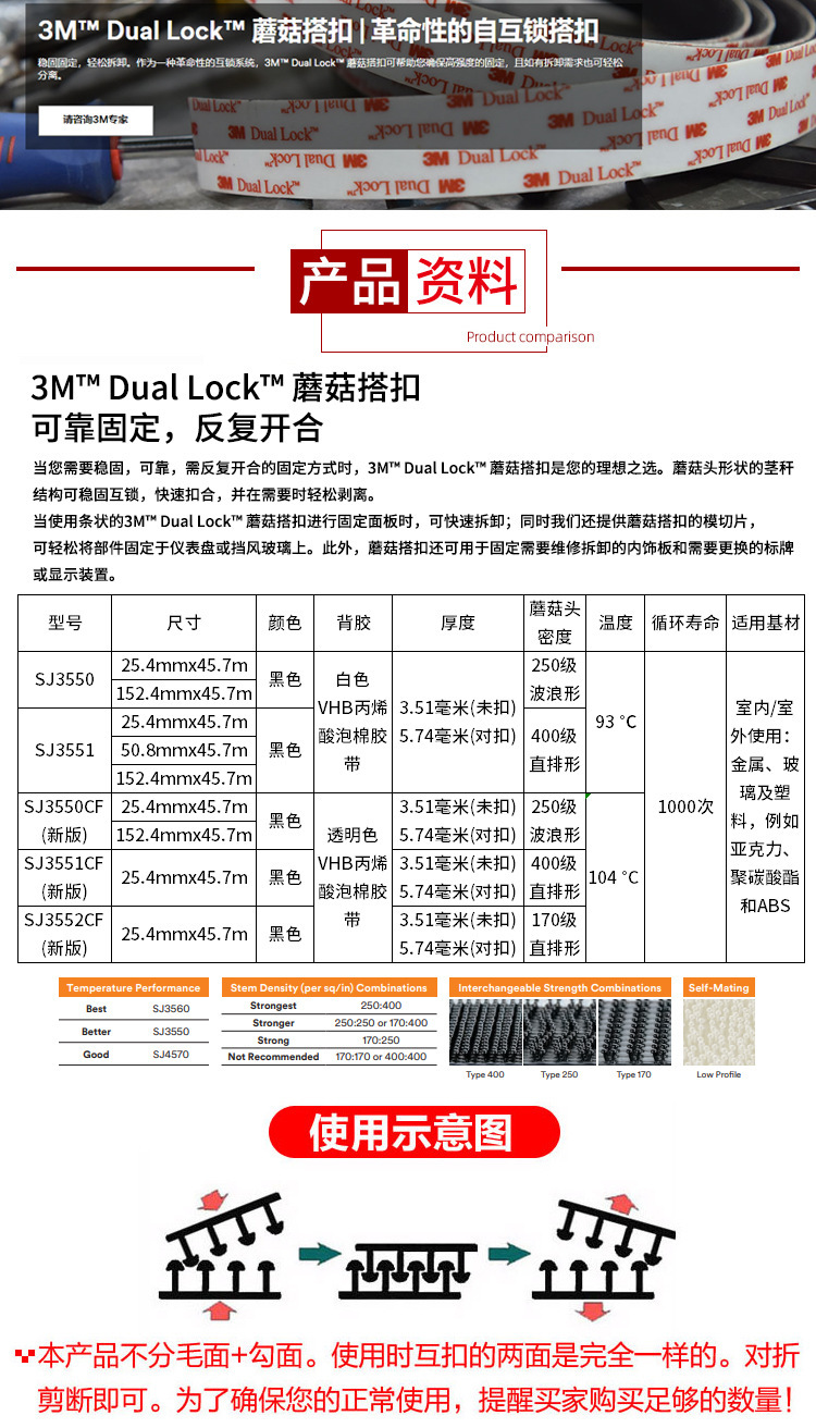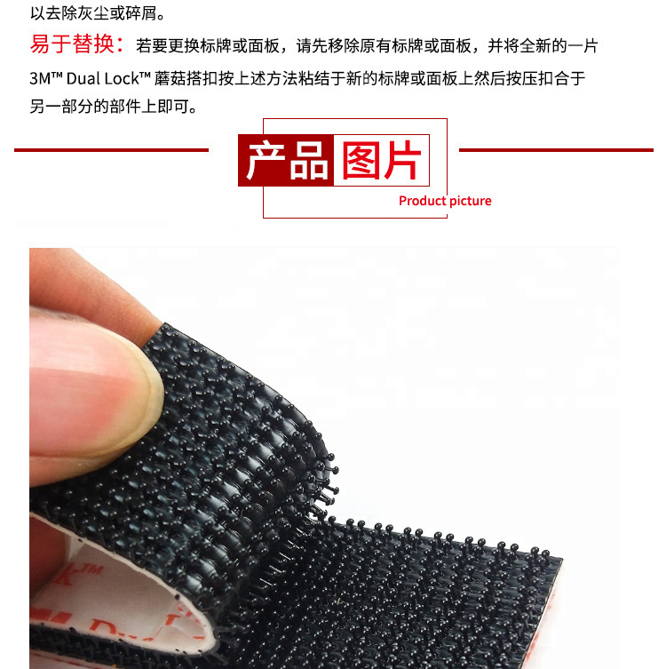 內(nèi)容描述:3M 蘑菇搭扣(Dual Lock)是一種可重復(fù)開啟的閉合系統(tǒng),固定牢固,拆卸容易,具有快速安全的可開合固定性能,可替代螺母/螺栓、搭扣、銷子、釘子、拉鏈、焊接等,給設(shè)計師們一個創(chuàng)新的選擇。