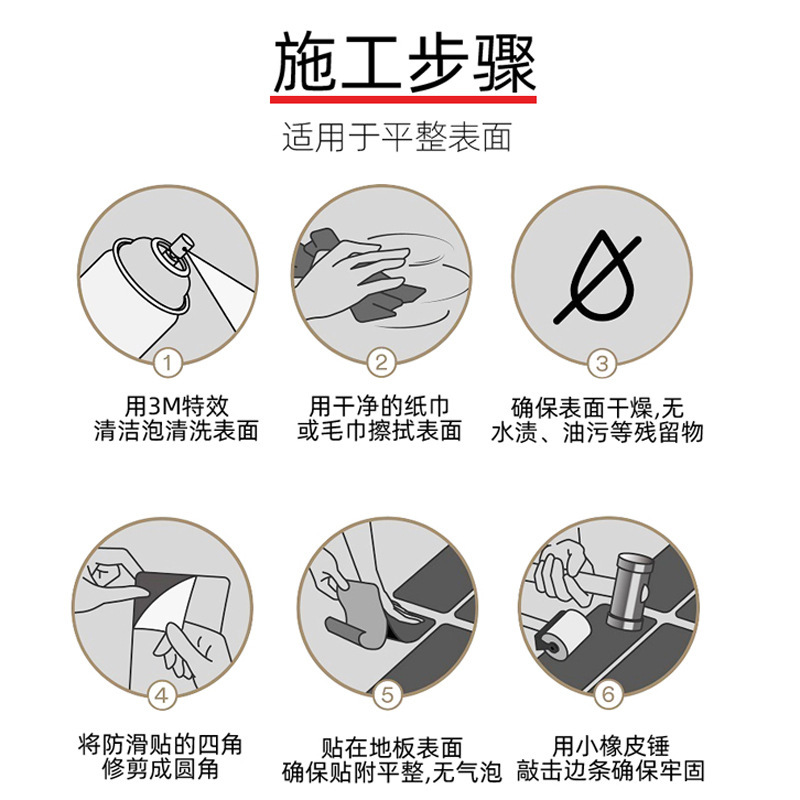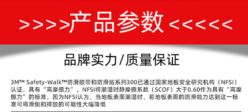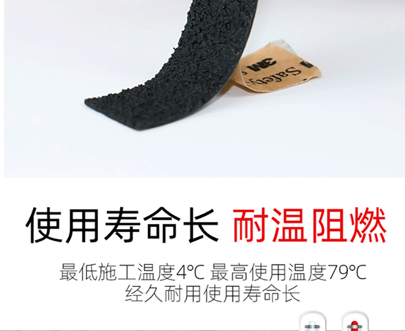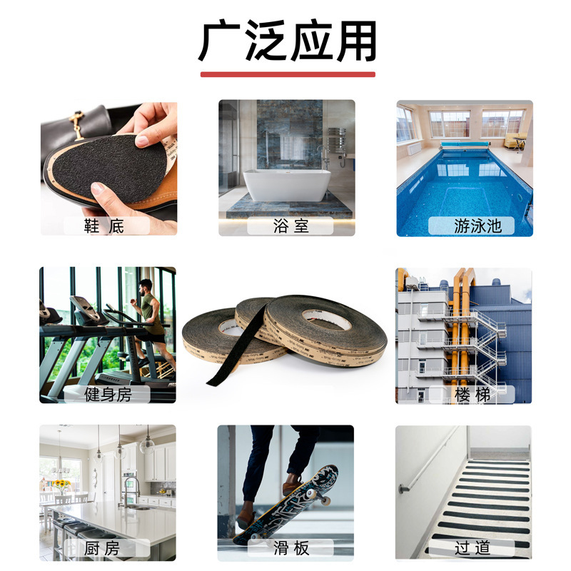 內(nèi)容描述:3M 310安全防滑貼,磨砂親膚彈性表面,舒適耐磨,耐溫阻燃,強(qiáng)粘不留痕。醫(yī)院酒店浴室公共樓梯臺(tái)階等多種場所適用,顏色:黑色,厚度:0.9MM,可定制形狀和不同的尺寸規(guī)格。